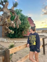 I recommend going with your normal sweatshirt size. In between sizes? Unsure what size to go with? If in doubt, size down! These have a wider boxy fit.